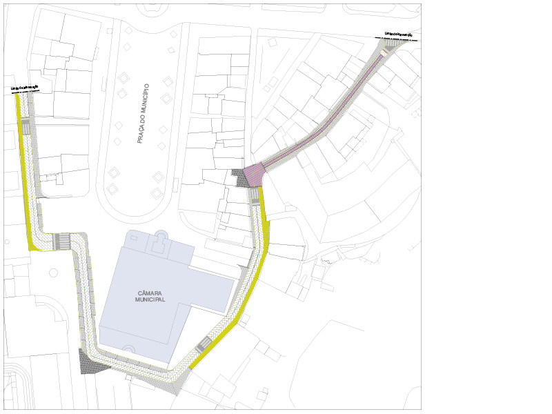 • Regeneração do espaço público, com mudança de pavimentos e relocalização de infraestruturas;