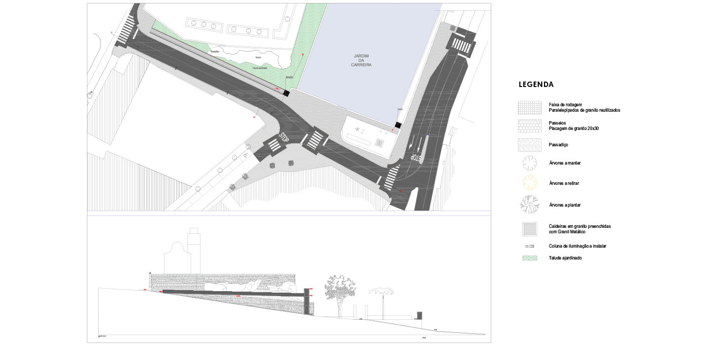 Na Rampa do Calvário, para além da instalação do meio mecânico, deverão ser reabilitados os arruamentos adjacentes, tendo em consideração os seguintes princípios: