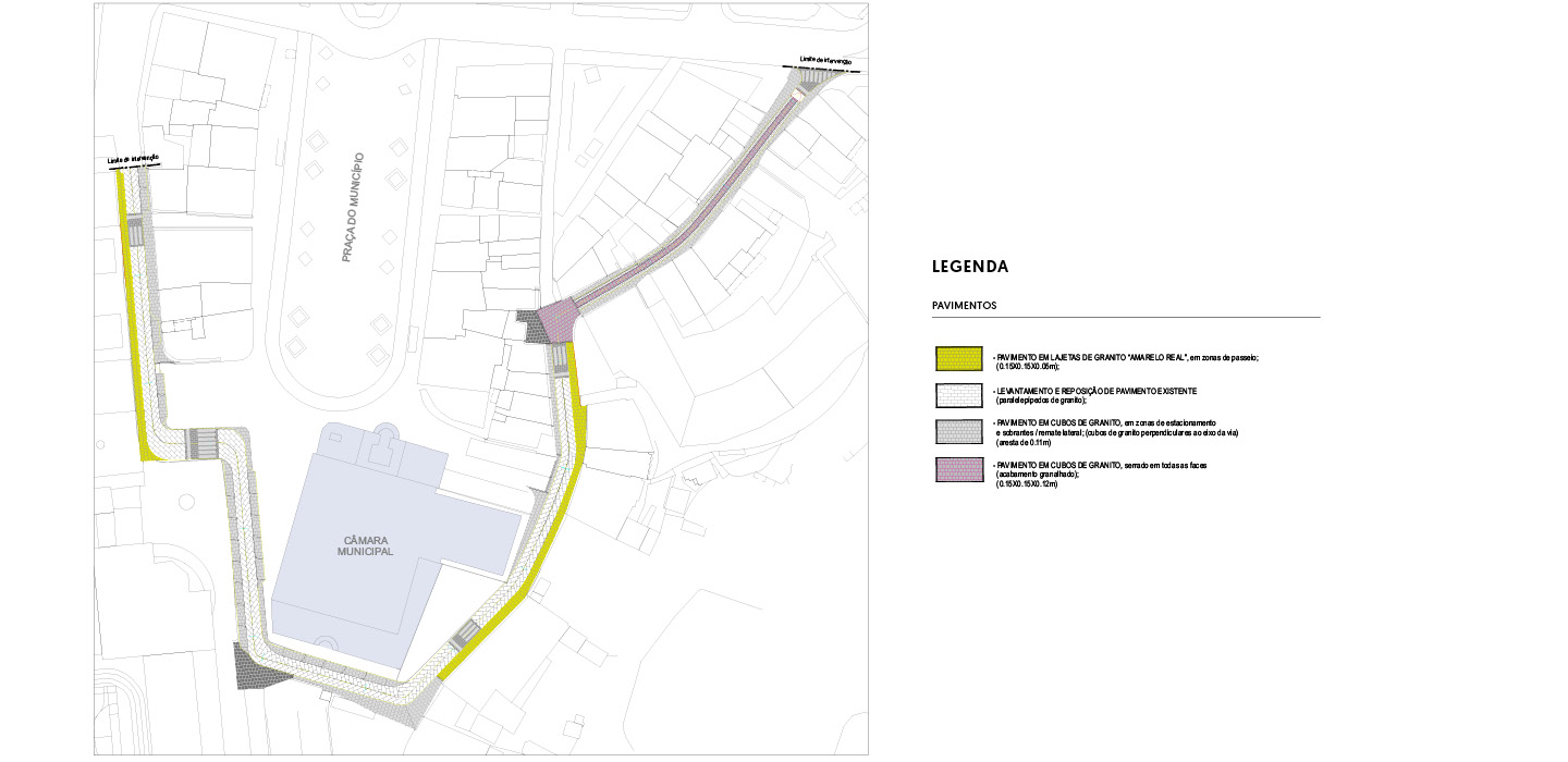 • Regeneração do espaço público, com mudança de pavimentos e relocalização de infraestruturas;